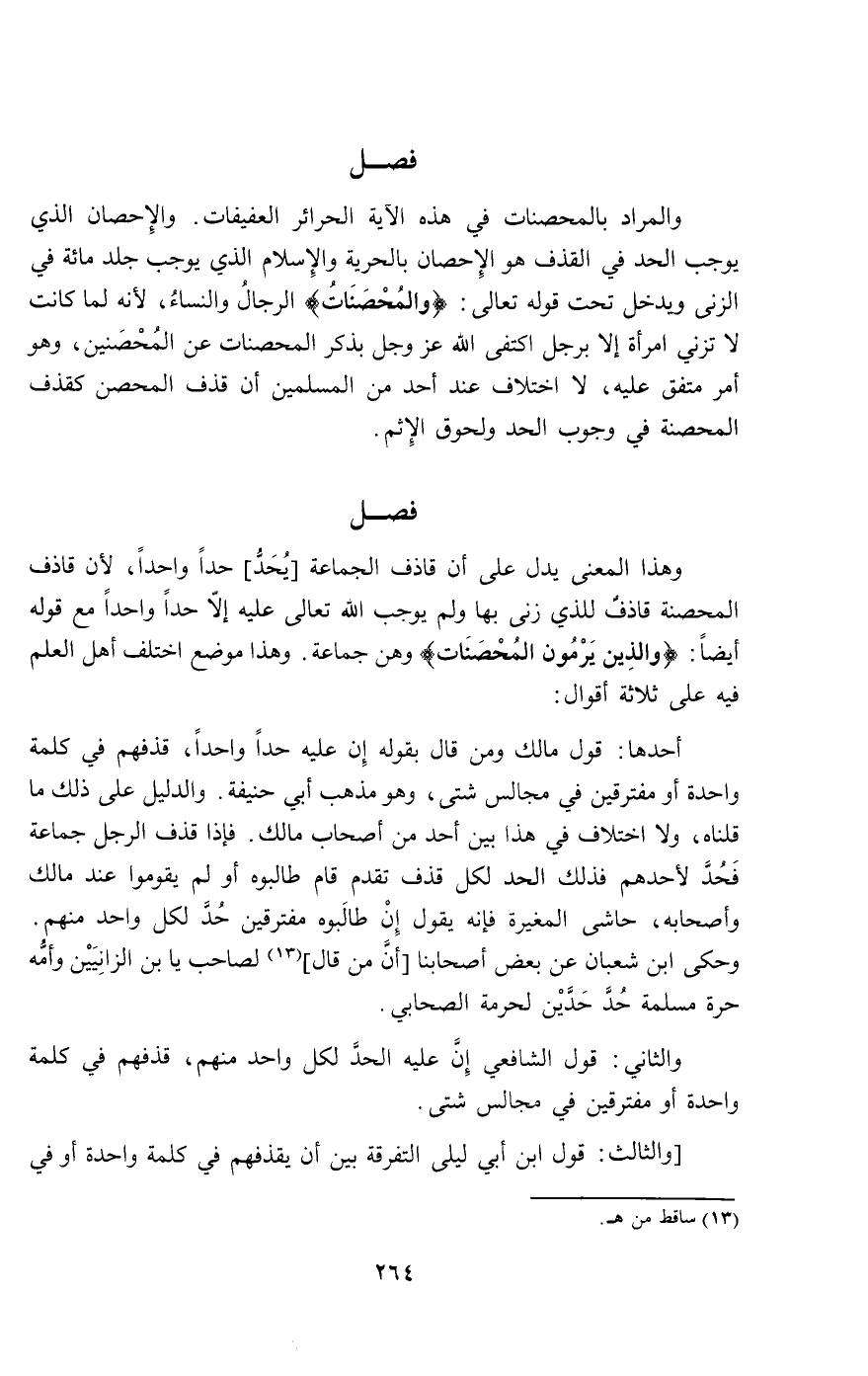 والثاني: قول الشافعي إن عليه الحد لكل واحد منهم، قذفهم في كلمة واحدة أو مفترقين في مجالس شتى. [والثالث قول ابن أبي ليلى التفرقة بين أن يقذفهم في كلمة واحدة أو في