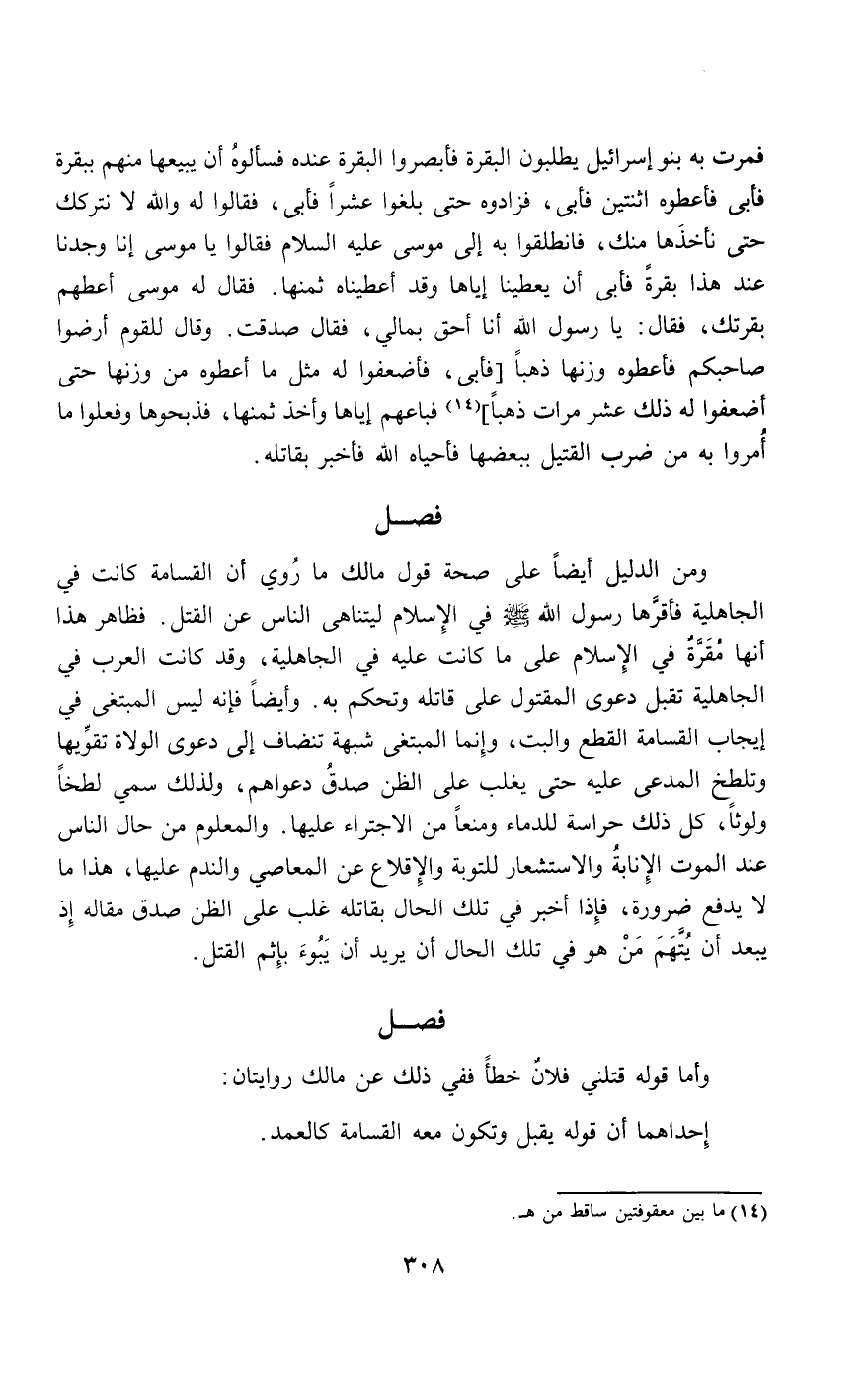 ومن الدليل أيضا على صحة قول مالك ما روي أن القسامة كانت في الجاهلية فأقرها رسول الله - صَلَّى اللَّهُ عَلَيْهِ وَسَلَّمَ - في الإسلام ليتناهى الناس عن القتل. فظاهر هذا أنها مقرة في الإسلام على ما كانت عليه في الجاهلية، وقد كانت العرب في الجاهلية تقبل دعوى المقتول على قاتله وتحكم به. وأيضا فإنه ليس المبتغى في إيجاب القسامة القطع والبت، وإنما المبتغى شبهة تنضاف إلى دعوى الولاة تقويها وتلطخ المدعى عليه حتى يغلب على الظن صدق دعواهم، ولذلك سمي لطخا ولوثا، كل ذلك حراسة للدماء ومنعا من الاجتراء عليها. والمعلوم من حال الناس عند الموت الإنابة والاستشعار للتوبة والإقلاع عن المعاصي والندم عليها، هذا ما لا يدفع ضرورة، فإذا أخبر في تلك الحال بقاتله غلب على الظن صدق مقاله إذ يبعد أن يتهم من هو في تلك الحال أن يريد أن يبوء بإثم القتل.