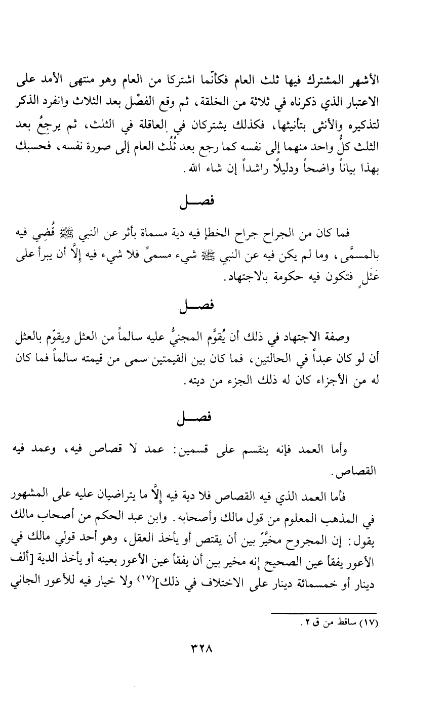 الأشهر المشترك فيها ثلث العام فكأنما اشتركا من العام وهو منتهى الأمد على الاعتبار الذي ذكرناه في ثلاثة من الخلقة، ثم وقع الفصل بعد الثلاث وانفرد الذكر لتذكيره والأنثى بتأنيثها، فكذلك يشتركان في العاقلة في الثلث، ثم يرجع بعد الثلث كل واحد منهما إلى نفسه كما رجع بعد ثلث العام إلى صورة نفسه، فحسبك بهذا بيانا واضحا ودليلا راشدا إن شاء الله.