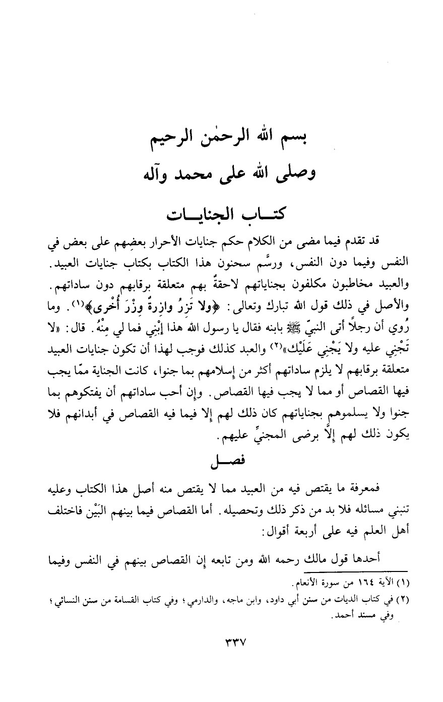 فمعرفة ما يقتص فيه من العبيد مما لا يقتص منه أصل هذا الكتاب وعليه تنبني مسائله فلا بد من ذكر ذلك وتحصيله. أما القصاص فيما بينهم البين فاختلف أهل العلم فيه على أربعة أقوال: