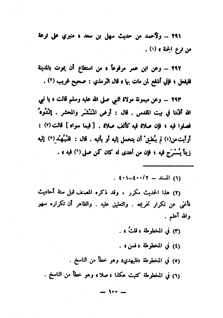 292- وعن ابن عمر مرفوعاً: " من استطاع أن يموت بالمدينة فليفعل; فإني أشفع لمن مات بها" قال الترمذي: صحيح غريب 2.