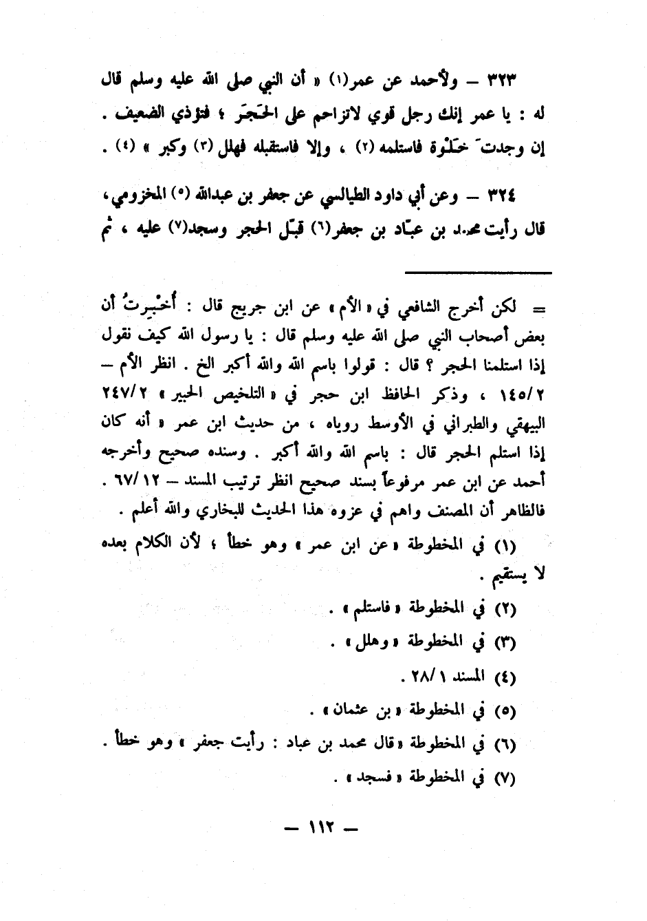 324- وعن أبي داود الطيالسي عن جعفر بن عبد الله5 المخزومي، قال: "رأيت محمد بن عبّاد بن جعفر6 قبّل الحجر وسجد7 عليه، ثم قال: رأيت خالك8 ابن عباس يقبله9 ويسجد عليه، وقال10 ابن عباس: رأيت عمر [بن الخطاب] يقبله11 ويسجد عليه، ثم
