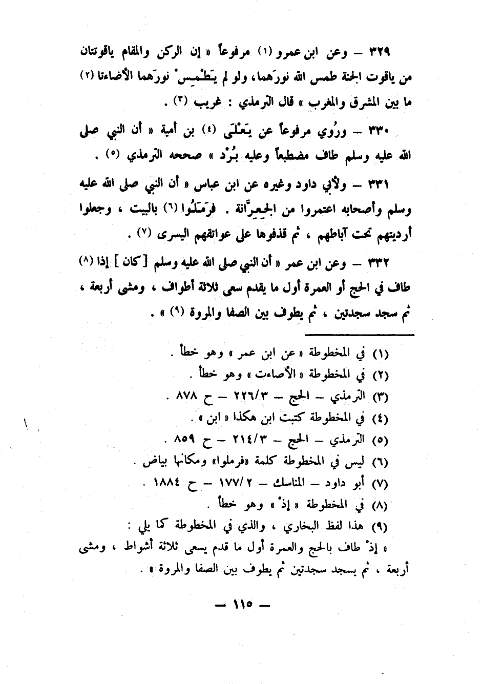 330- ورُوي مرفوعاً عن يَعْلَى4 بن أمية: "أن النبي صلى الله عليه وسلم طاف مضطبعاً وعليه بُرْد" صححه الترمذي 5.