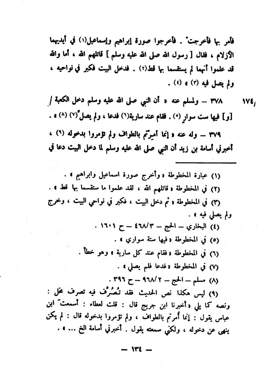 9 ليس هكذا نص الحديث فقد تُصُرِّف فيه تصرف مخل: ونصه كما يلي: "أخبرنا ابن جريج قال: قلت لعطاء: أسمعتَ ابن عباس يقول: إنما أُمِرتم بالطواف, ولم تؤمروا بدخوله قال: لم يكن ينهى عن دخوله, ولكني سمعته يقول: أخبرني أسامة إلخ ... ".