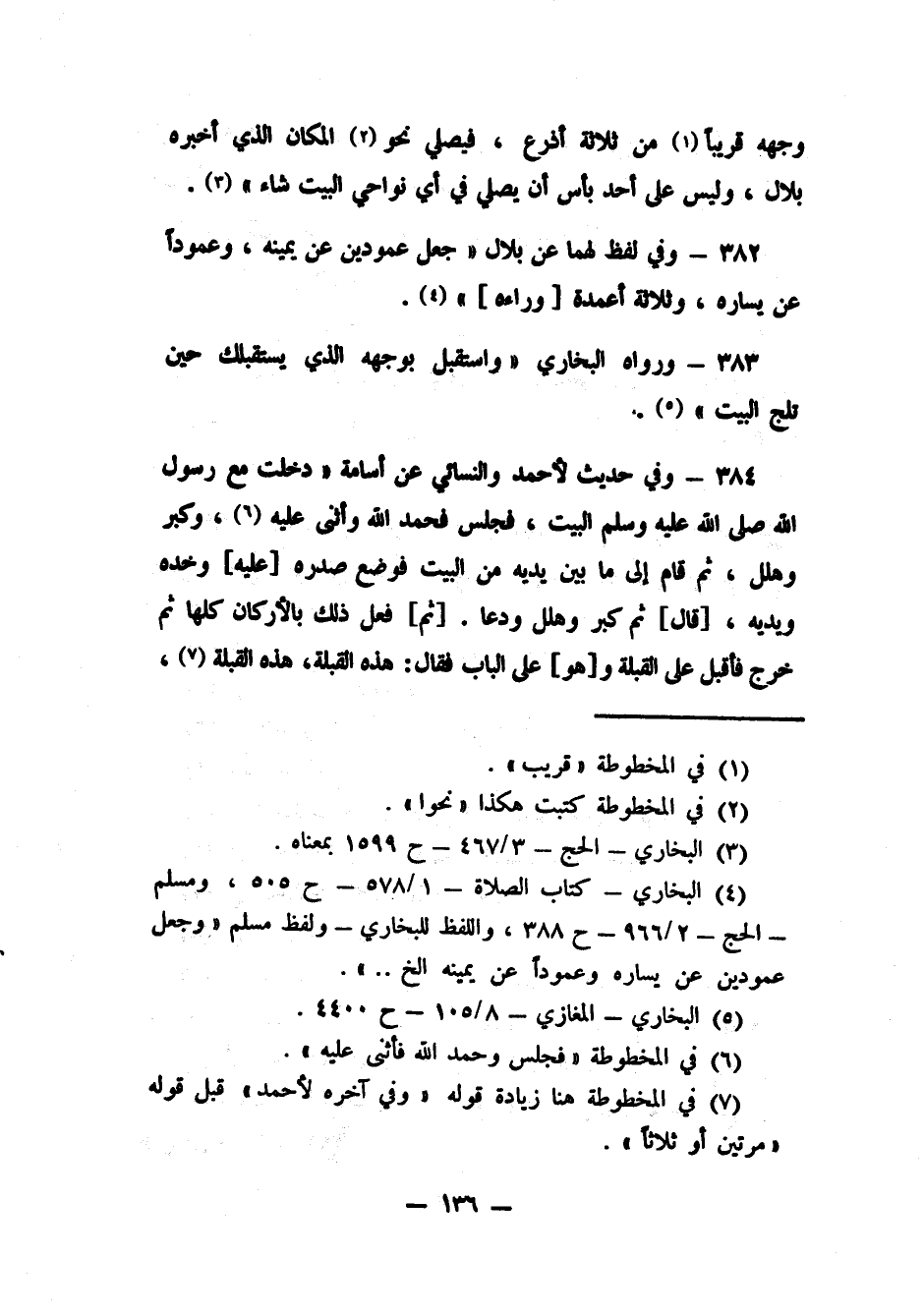 383- ورواه البخاري: "واستقبل بوجهه الذي يستقبلك حين تلجالبيت"5.