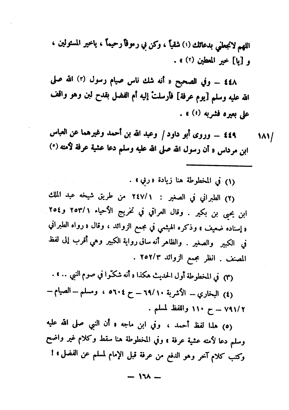 449- وروى أبو داود وعبد الله بن أحمد وغيرهما عن العباس بن مرداس: "أن رسول الله صلى الله عليه وسلم دعا عشية عرفةلأمته5