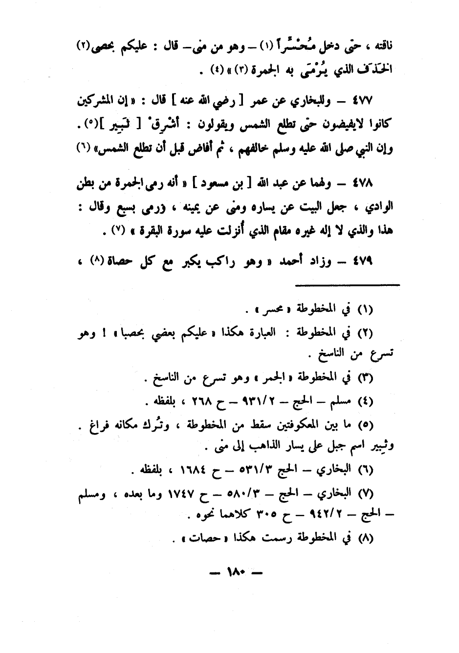 479- وزاد أحمد: "وهو راكب يكبر مع كل حصاة، 8