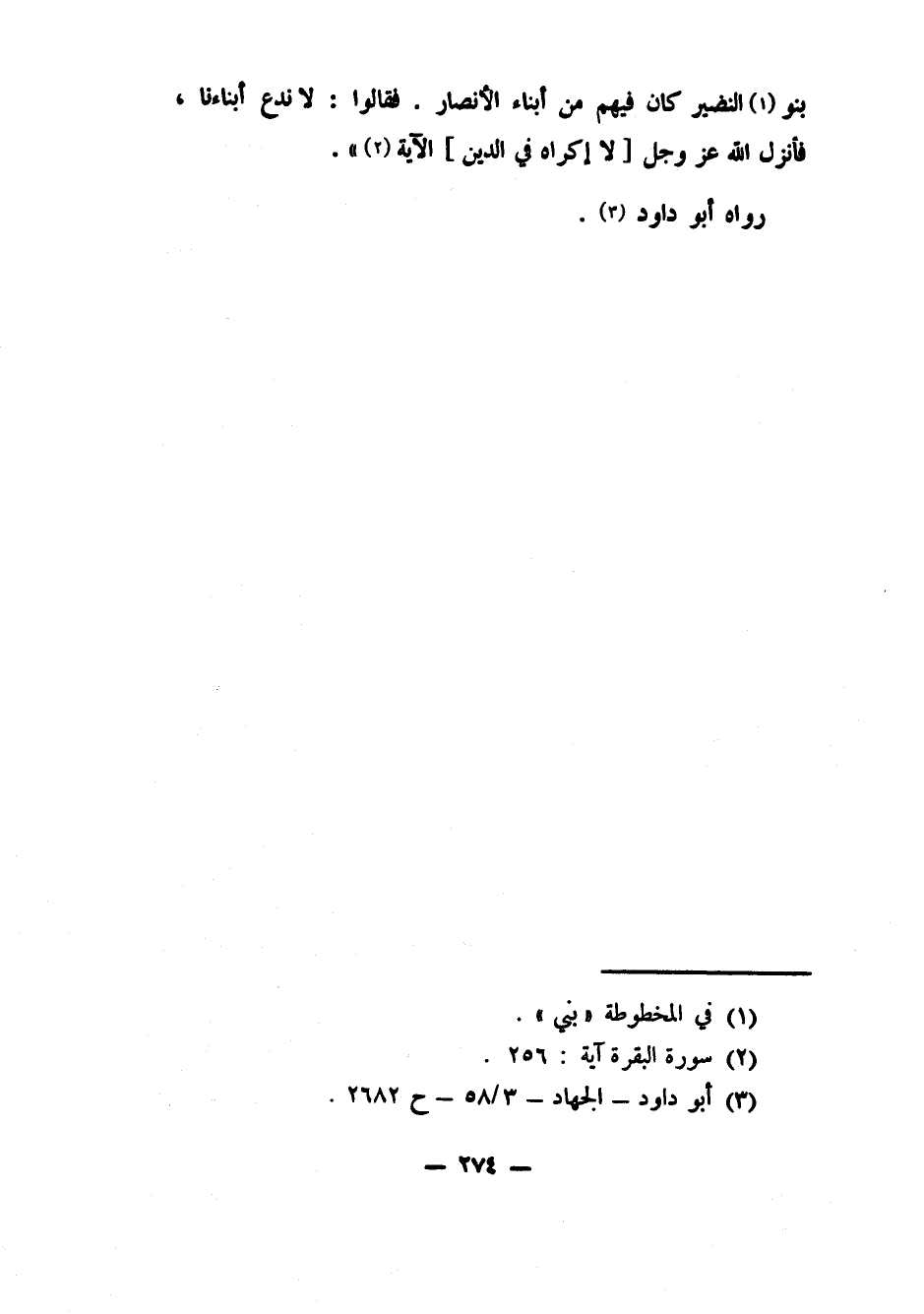بنو1 النضير كان فيهم من أبناء الأنصار. فقالوا: لا ندع أبناءنا، فأنزل الله عز وجل {لا إِكْرَاهَ فِي الدِّينِ} ] الآية2.