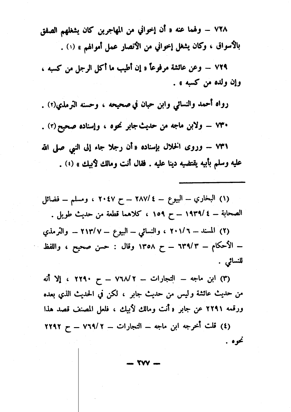 729- وعن عائشة مرفوعاً: "إن أطيب ما أكل الرجل من كسبه، وإن ولده من كسبه" رواه أحمد والنسائي وابن حبان في صحيحه، وحسنه الترمذي2.