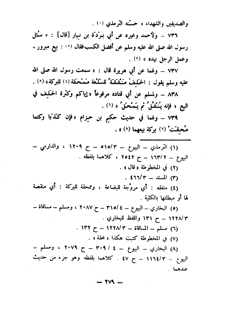 739- ولهما في حديث حكيم بن حِزام: "فإن كَذَبا وكتما مُحِقَتْ 7 بركة بيعهما" 8.