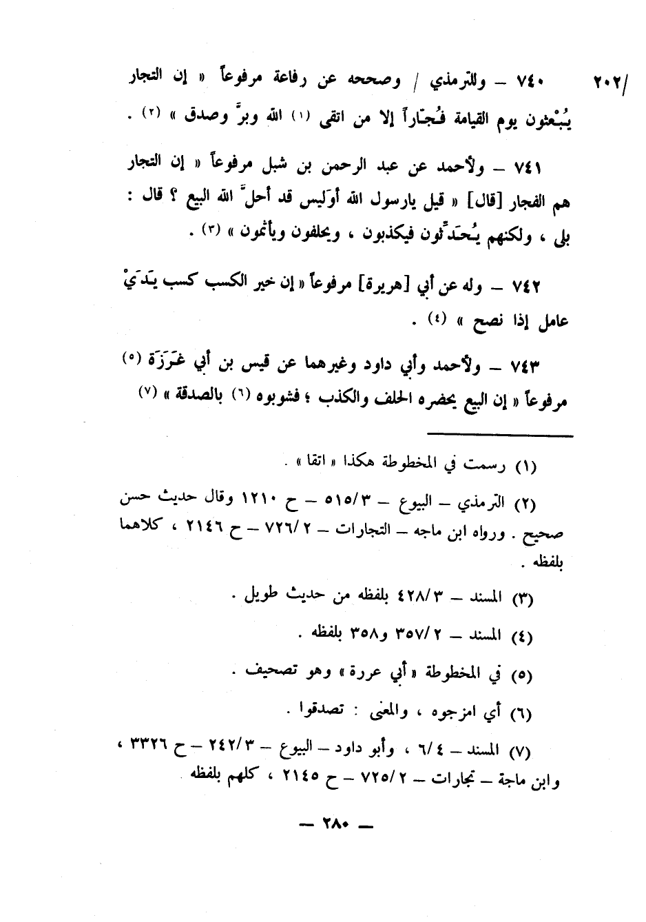 741- ولأحمد عن عبد الرحمن بن شبل مرفوعاً: " إن التجار هم الفجار، [قال] : قيل: يا رسول الله أوَليس قد أحلَّ الله البيع؟ قال: بلى، ولكنهم يُحَدِّثون فيكذبون، ويحلفون ويأثمون" 3.