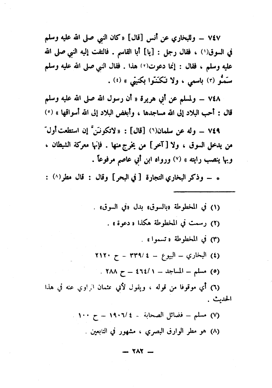 748- ولمسلم عن أبي هريرة أن رسول الله صلى الله عليه وسلم قال: " أحب البلاد إلى الله مساجدها، وأبغض البلاد إلى الله أسواقها" 5.