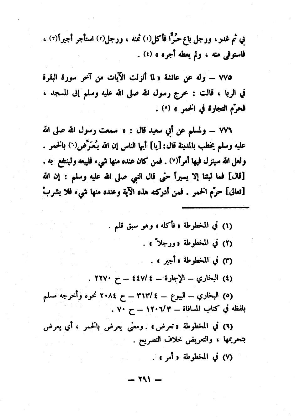 775- وله عن عائشة: "لما أنزلت الآيات من آخر سورة البقرة في الربا، قالت: خرج رسول الله صلى الله عليه وسلم إلى المسجد، فحرّم التجارة في الخمر"5.