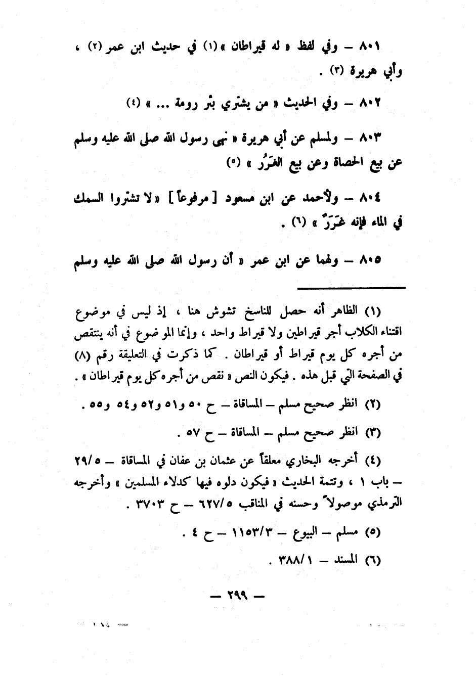 803- ولمسلم عن أبي هريرة: "نهى رسول الله صلى الله عليه وسلم عن بيع الحصاة وعن بيع الغَرَر"5.