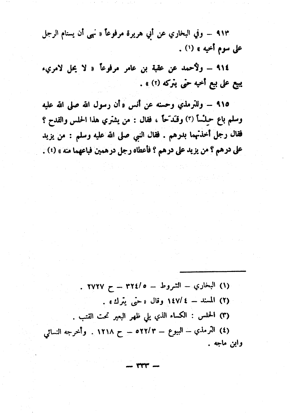 913- وفي البخاري عن أبي هريرة مرفوعاً: " نهى أن يستام الرجل على سوم أخيه" 1.