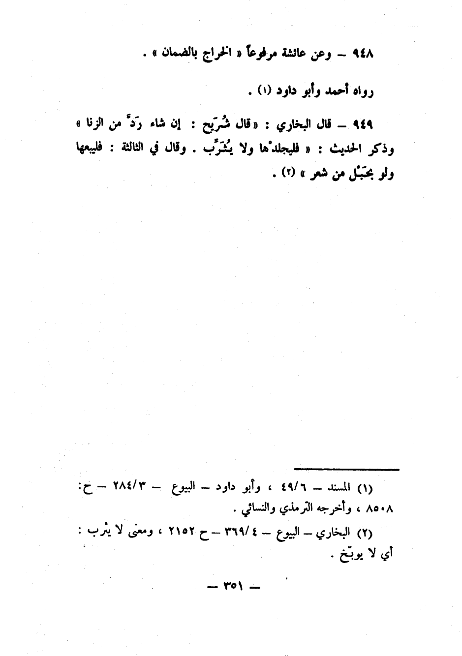 948- وعن عائشة مرفوعاً: "الخراج بالضمان" رواه أحمد وأبو داود 1.