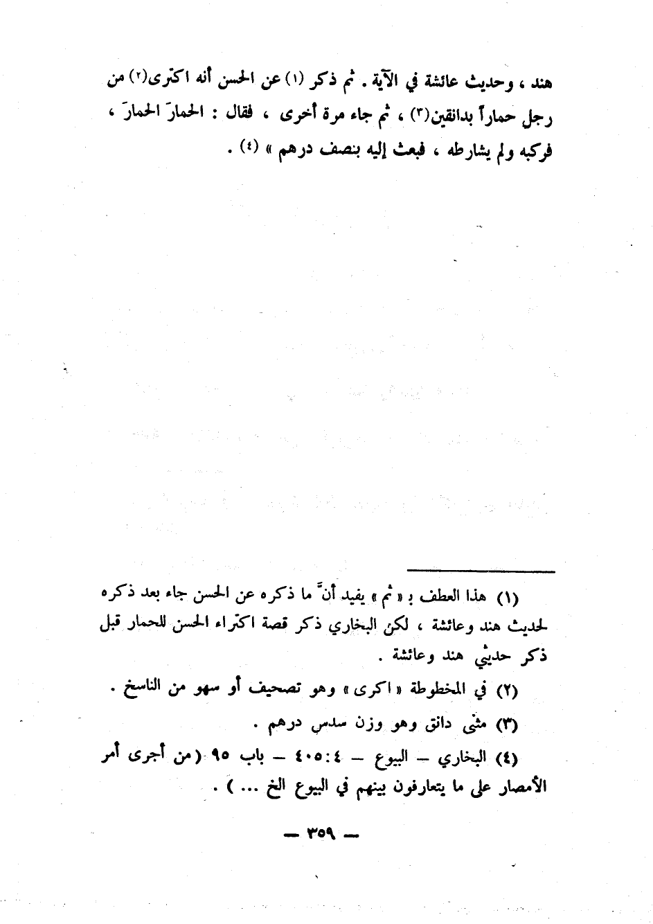 1 هذا العطف بـ"ثم" يفيد أن ما ذكره عن الحسن جاء بعد ذكره لحديث هند وعائشة, لكن البخاري ذكر قصة اكتراء الحسن للحمار قبل ذكر حديثي هند وعائشة.
