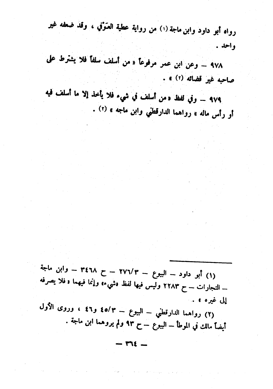 979- وفي لفظ: "من أسلف في شيء فلا يأخذ إلا ما أسلف فيه أو رأس ماله" رواهما الدارقطني وابن ماجه.