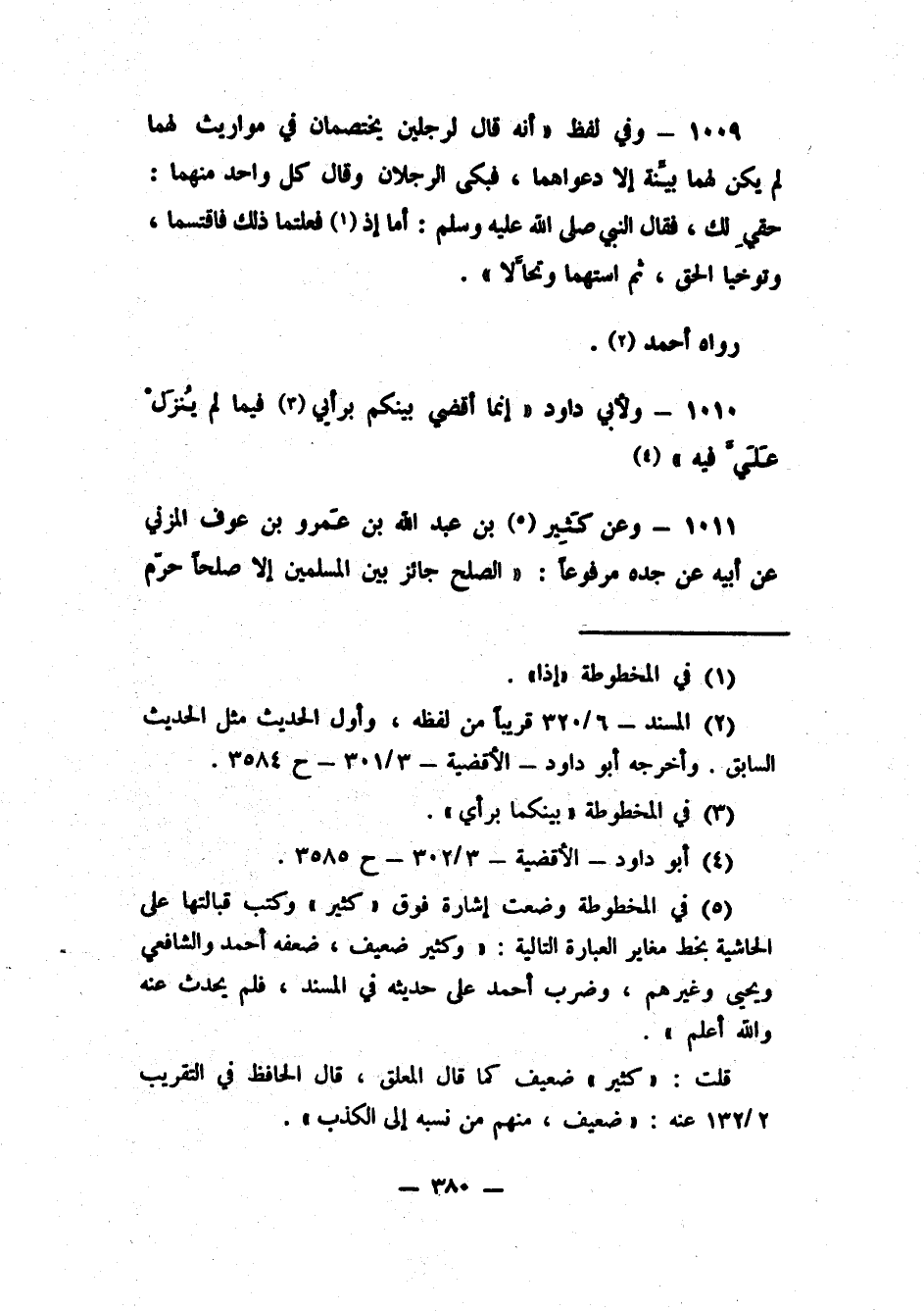 1011- وعن كَثير5 بن عبد الله بن عَمرو بن عوف المزني عن أبيه عن جده مرفوعاً: "الصلح جائز بين المسلمين إلا صلحا حرّم
