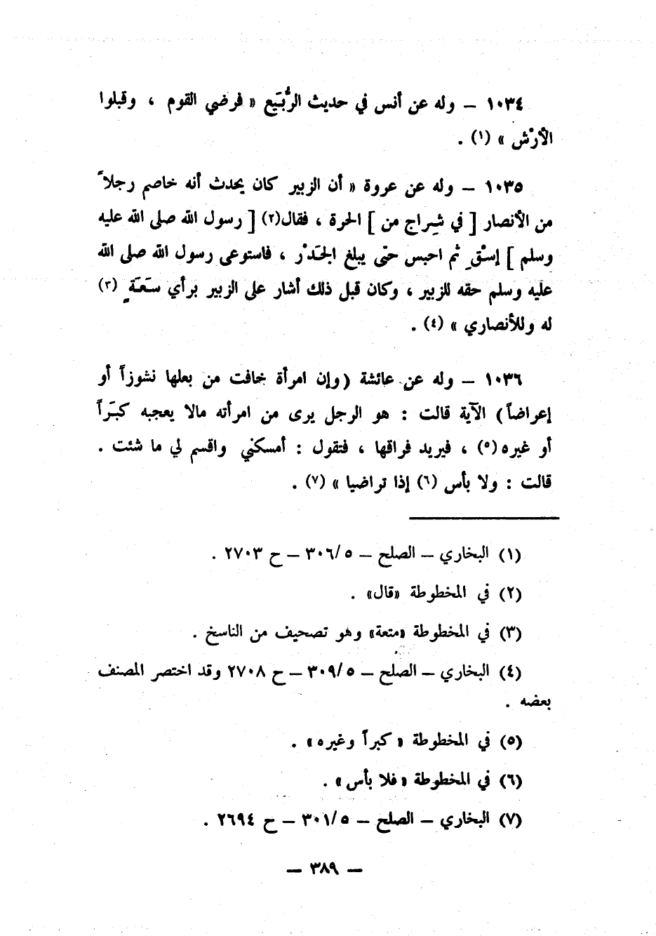 1035- وله عن عروة: "أن الزبير كان يحدث أنه خاصم رجلاً من الأنصار [في شِراج من] الحرة، فقال2 [رسول الله صلى الله عليه وسلم] : اسقِ ثم احبس حتى يبلغ الْجَدْر، فاستوعى رسول الله صلى الله عليه وسلم حقه للزبير، وكان قبل ذلك أشار على الزبير برأي سَعَةٍ3 له وللأنصاري"4.