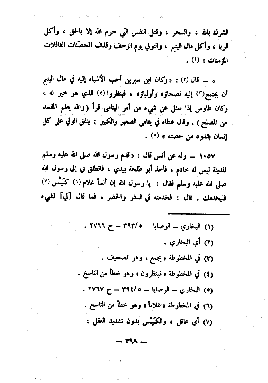 1 البخاري - الوصايا - 5/393 - ح2766.