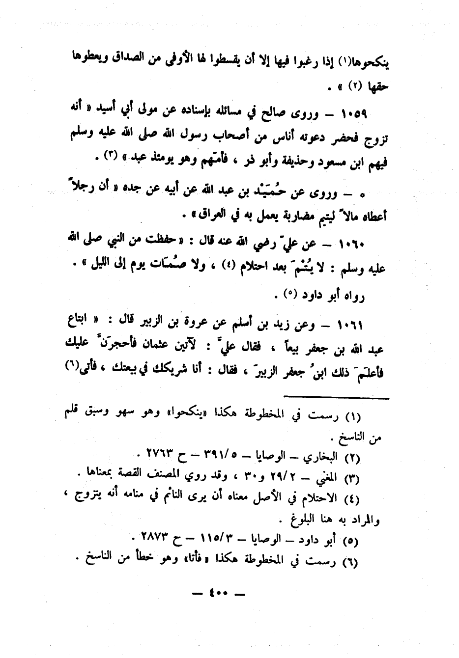 1060- عن عليّ رضي الله عنه قال: "حفظت من النبي صلى الله عليه وسلم لا يُتْمَ بعد احتلام4 ولا صُمَات يوم إلى الليل" رواه أبو داود5.