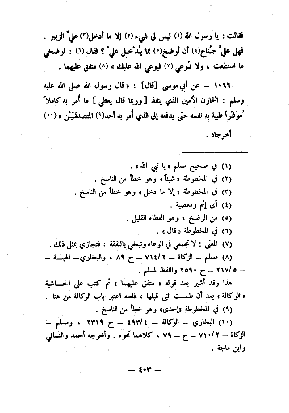 1066- عن أبي موسى [قال] : قال رسول الله صلى الله عليه وسلم: " الخازن الأمين الذي ينفذ [وربما قال يعطي] ما أمر به كاملا مُوَفِّرا طيبة به نفسه حتى يدفعه إلى الذي أُمر به أحد 9 المتصدقَيْن" 10 أخرجاه.