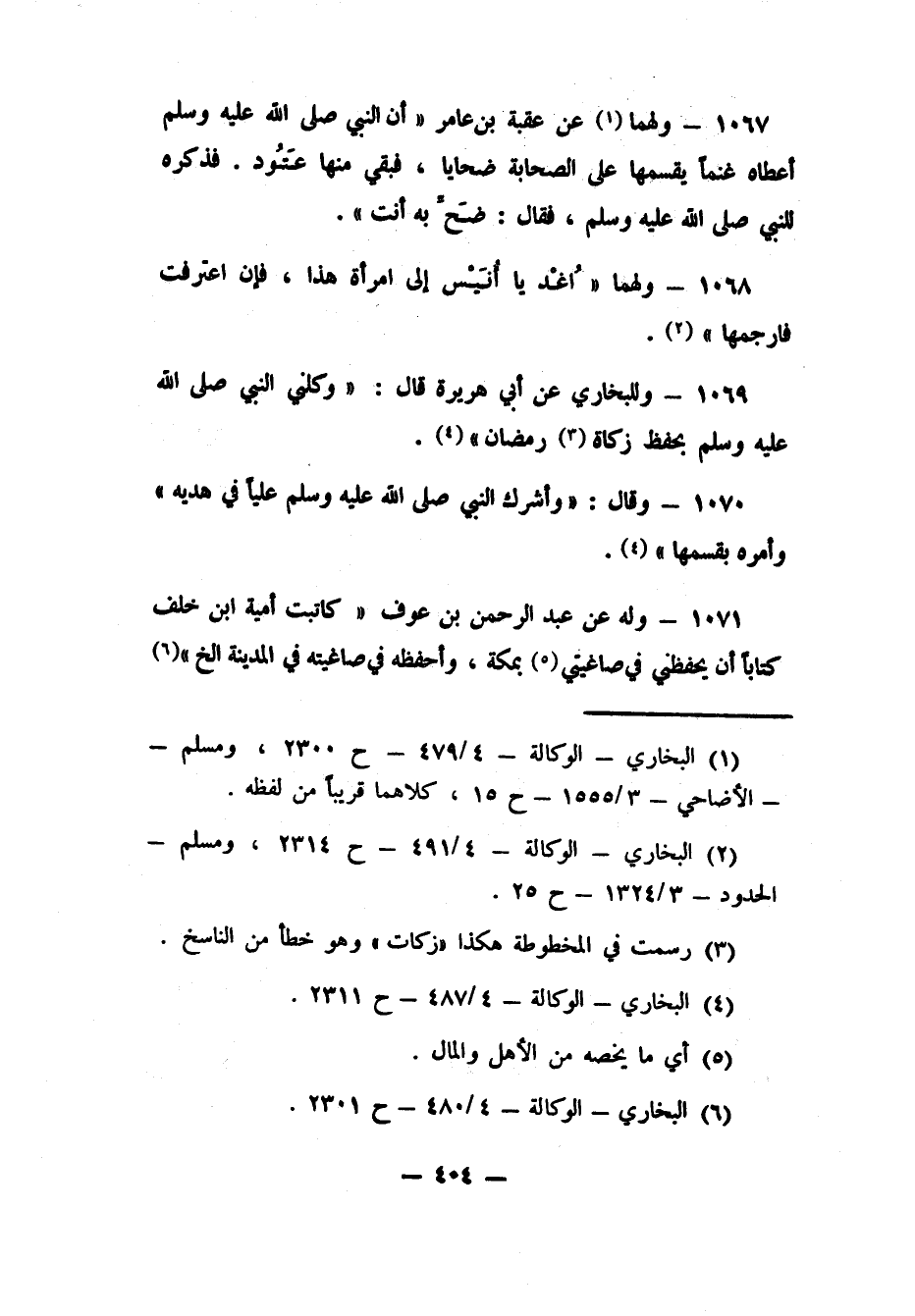 1071- وله عن عبد الرحمن بن عوف: "كاتبت أمية بن خلف كتاباً أن يحفظني في صاغيتي6 بمكة، وأحفظه في صاغيته في المدينة" إلخ7.