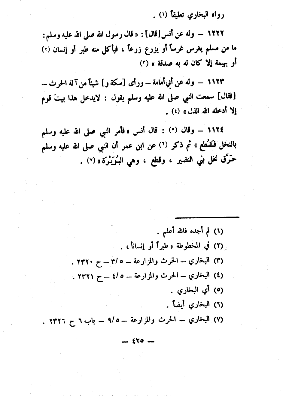 7 البخاري -الحرث والمزارعة- 5/ 9- باب 6-ح 2326.