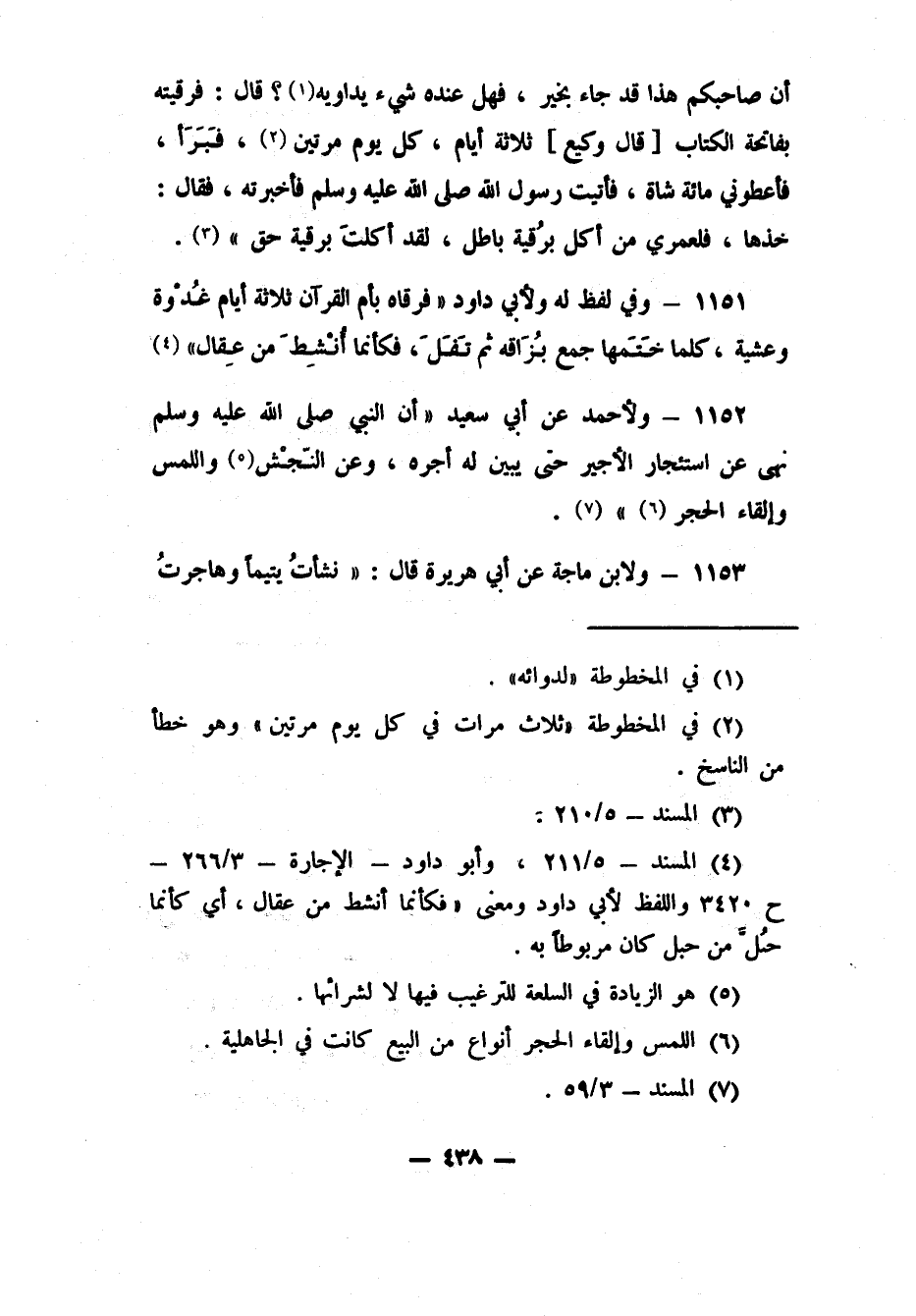 1151- وفي لفظ له ولأبي داود: "فرقاه بأم القرآن ثلاثة أيام غُدْوة وعشية، كلما خَتَمها جمع بُزَاقه ثم تَفَلَ، فكأنما أُنْشِطَ من عِقال"4.