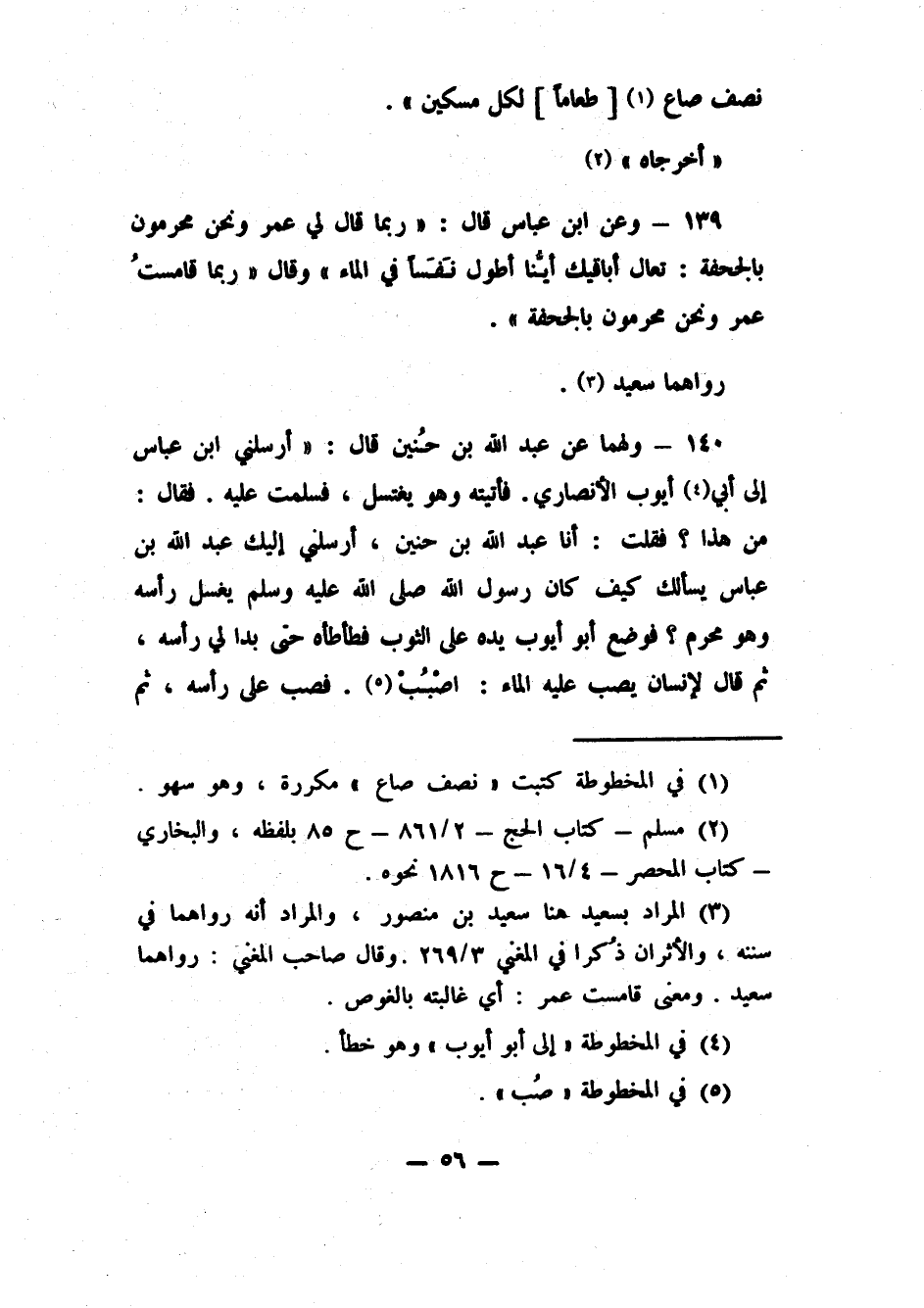 139- وعن ابن عباس قال: "ربما قال لي عمر ونحن محرمون بالجحفة: تعال أباقيك أيُّنا أطول نَفَساً في الماء" وقال "ربما قامستُ عمر ونحن محرمون بالجحفة". رواهما سعيد3.