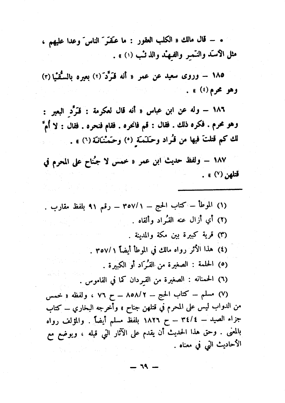 187- ولفظ حديث ابن عمر "خمس لا جُناح على المحرم في قتلهن" 7.