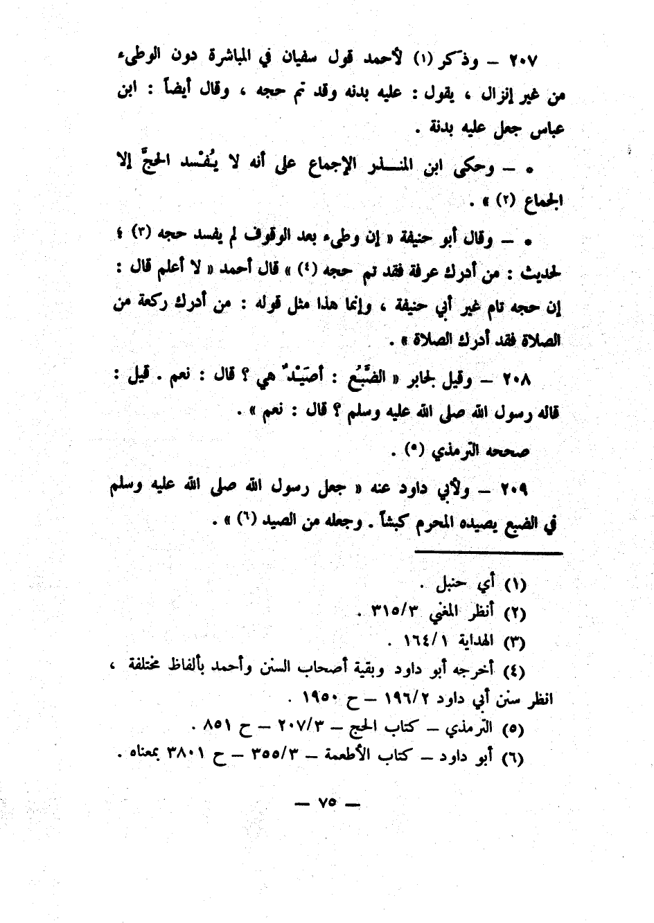 207- وذَكر1 لأحمد قول سفيان في المباشرة دون الوطئ من غير إنزال، يقول: عليه بدنه وقد تم حجه، وقال أيضاً: ابن عباس جعل عليه بدنة.