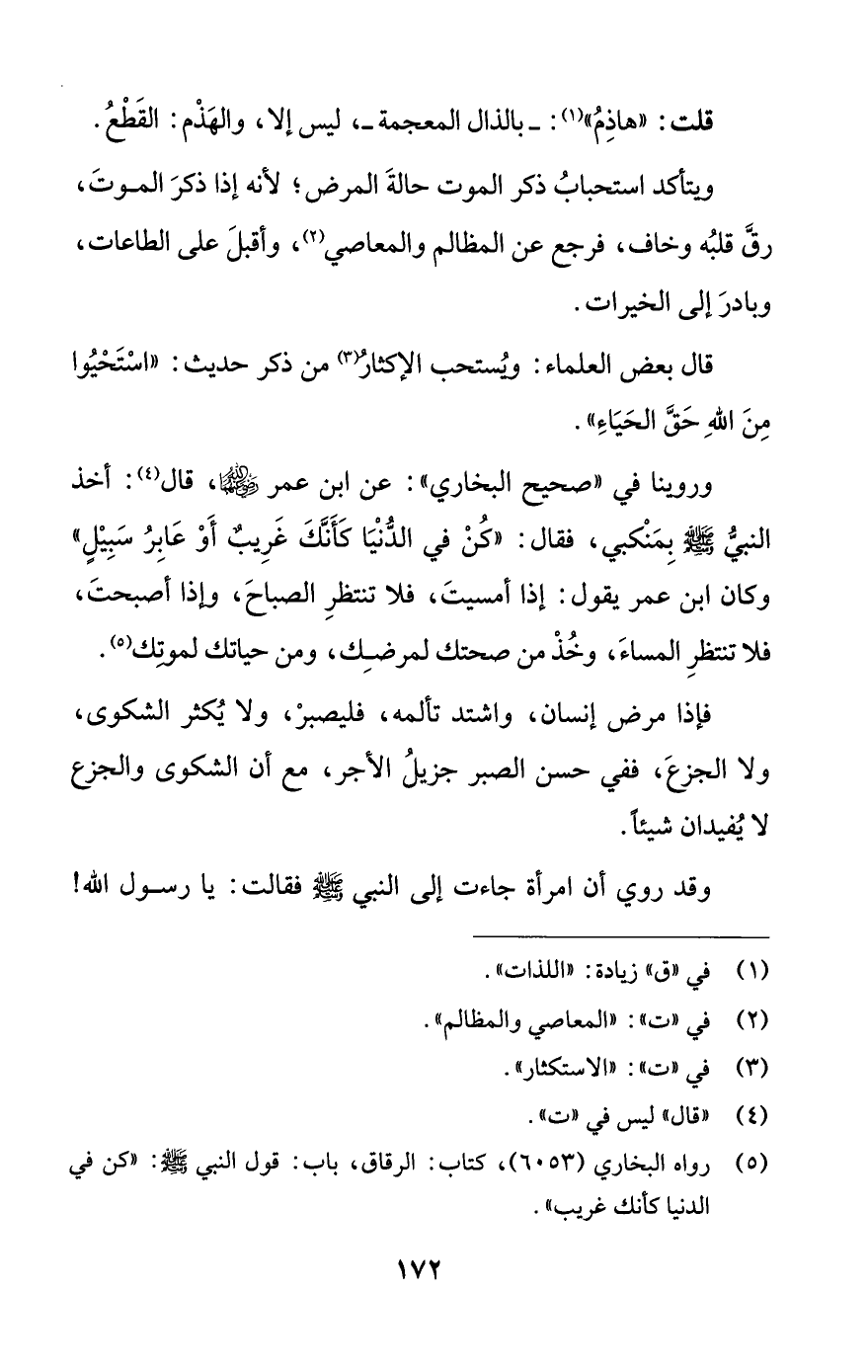 (¬5) رواه البخاري (6053)، كتاب: الرقاق، باب: قول النبي -صلى اللَّه عليه وسلم-: "كن في الدنيا كأنك غريب".