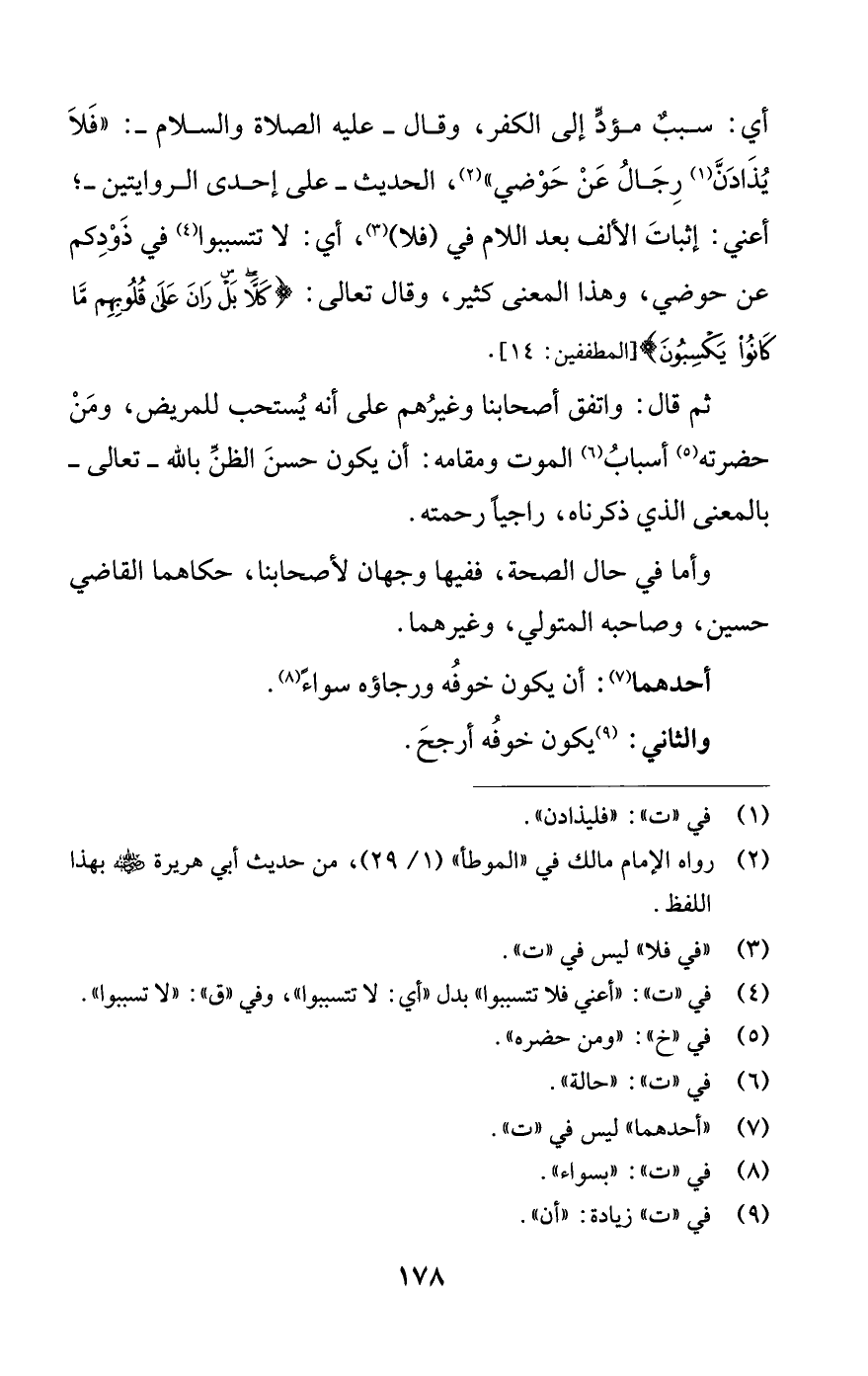 أي: سببٌ مؤدٍّ إلى الكفر، وقال -عليه الصلاة والسلام-: "فَلَا يُذَادَنَّ (¬1) رِجَالُ عَنْ حَوْضي" (¬2)، الحديث -على إحدى الروايتين-؛ أعني: إثباتَ الألف بعد اللام في (فلا) (¬3)، أي: لا تتسببوا (¬4) في ذَوْدِكم عن حوضي، وهذا المعنى كثير، وقال تعالى: {كَلَّا بَلْ رَانَ عَلَى قُلُوبِهِمْ مَا كَانُوا يَكْسِبُونَ} [المطففين: 14].