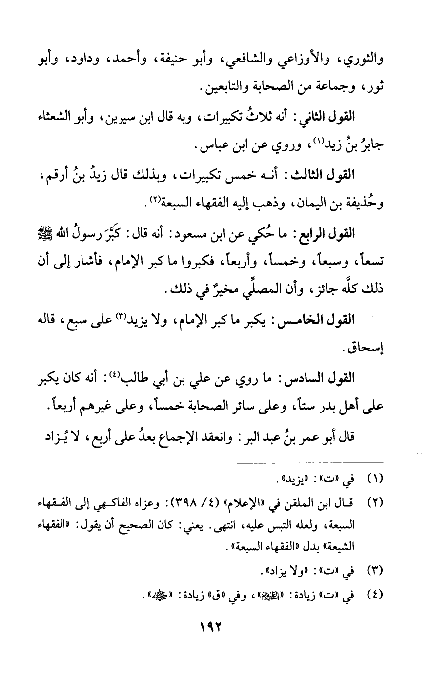 القول الثالث: أنه خمس تكبيرات، وبذلك قال زيدُ بنُ أرقم، وحُذيفة بن اليمان، وذهب إليه الفقهاء السبعة (¬2).