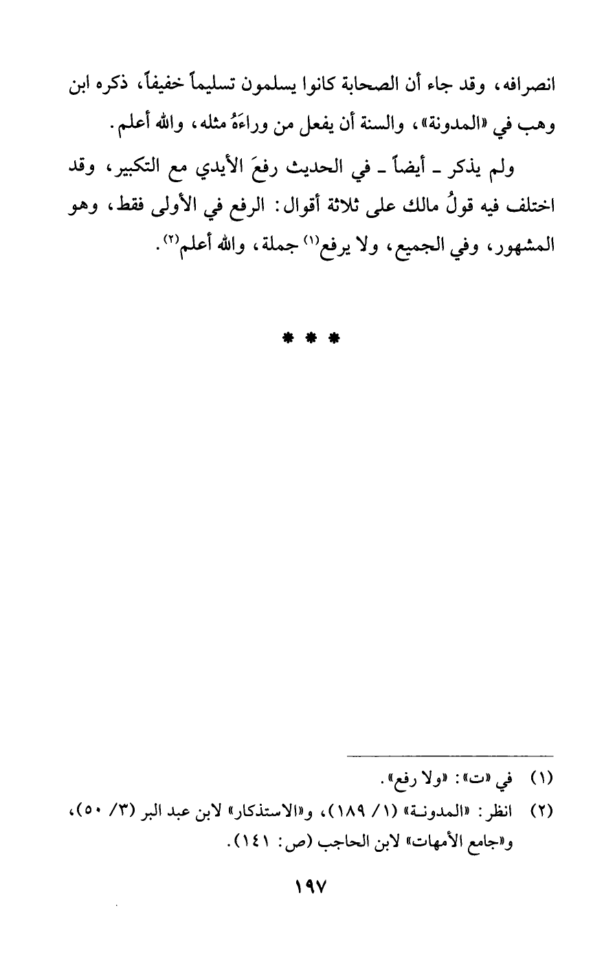 (¬2) انظر: "المدونة" (1/ 189)، و"الاستذكار" لابن عبد البر (3/ 50)، و"جامع الأمهات" لابن الحاجب (ص: 141).