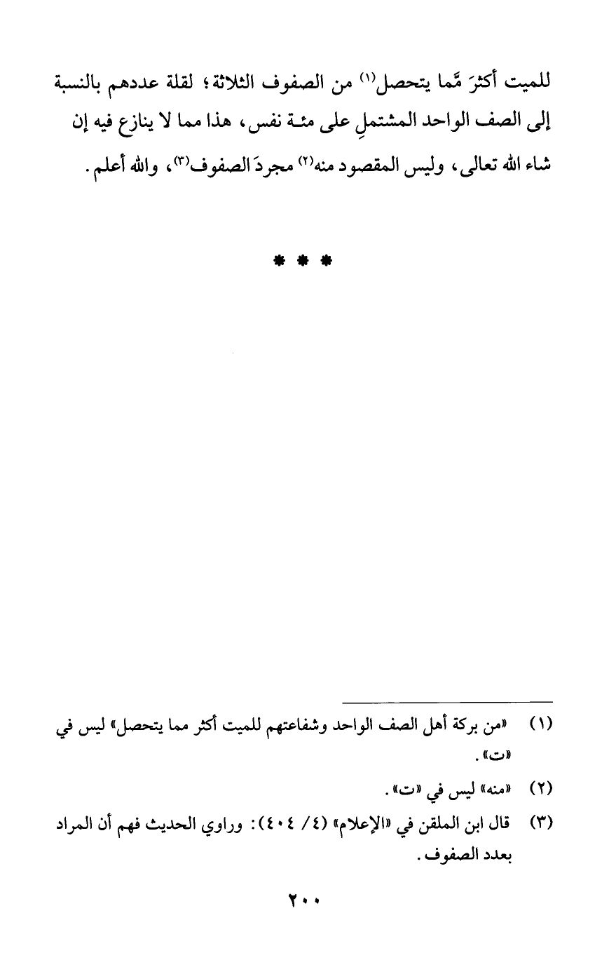 للميت أكثرَ ممَّا يتحصل (¬1) من الصفوف الثلاثة؛ لقلة عددهم بالنسبة إلى الصف الواحد المشتملِ على مئة نفس، هذا مما لا ينازع فيه إن شاء اللَّه تعالى، وليس المقصود منه (¬2) مجردَ الصفوف (¬3)، واللَّه أعلم.