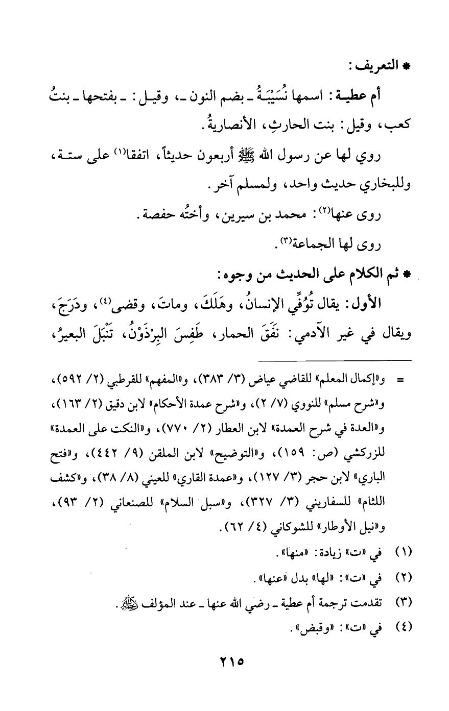 (¬3) تقدمت ترجمة أم عطية -رضي اللَّه عنها- عند المؤلف رحمه اللَّه.