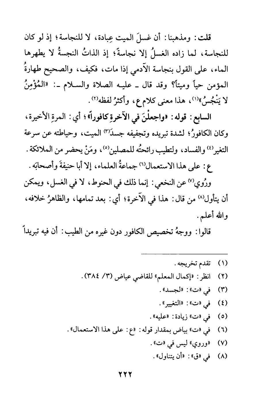 ورُوي (¬7) عن النخعي: إنما ذلك في الحنوط، لا في الغسل، ويمكن أن يتأول (¬8) من قال: هذا في الآخرة، أي: بعد تمامها، والظاهرُ خلافه، واللَّه أعلم.