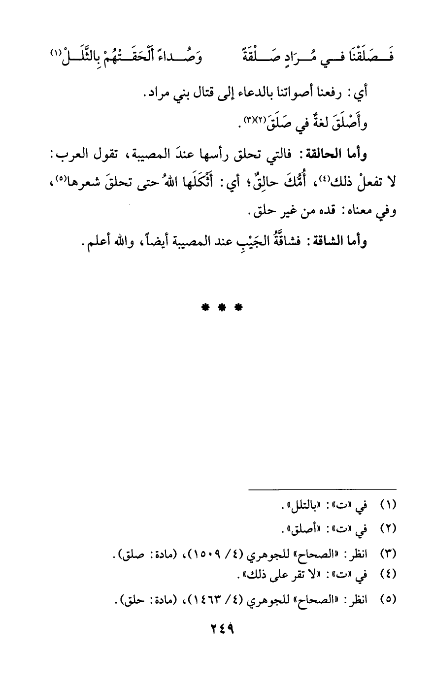(¬3) انظر: "الصحاح" للجوهري (4/ 1509)، (مادة: صلق).