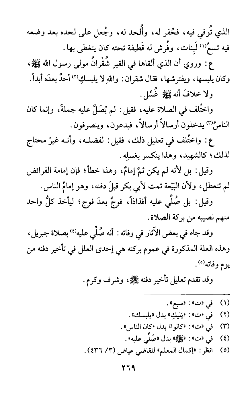 وقد تقدم تعليل تأخير دفنه -صلى اللَّه عليه وسلم-، وشرف وكرم.