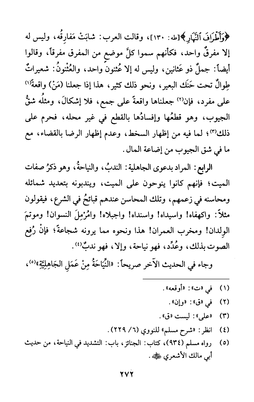 (¬5) رواه مسلم (934)، كتاب: الجنائز، باب: التشديد في النياحة، من حديث أبي مالك الأشعري -رضي اللَّه عنه-.