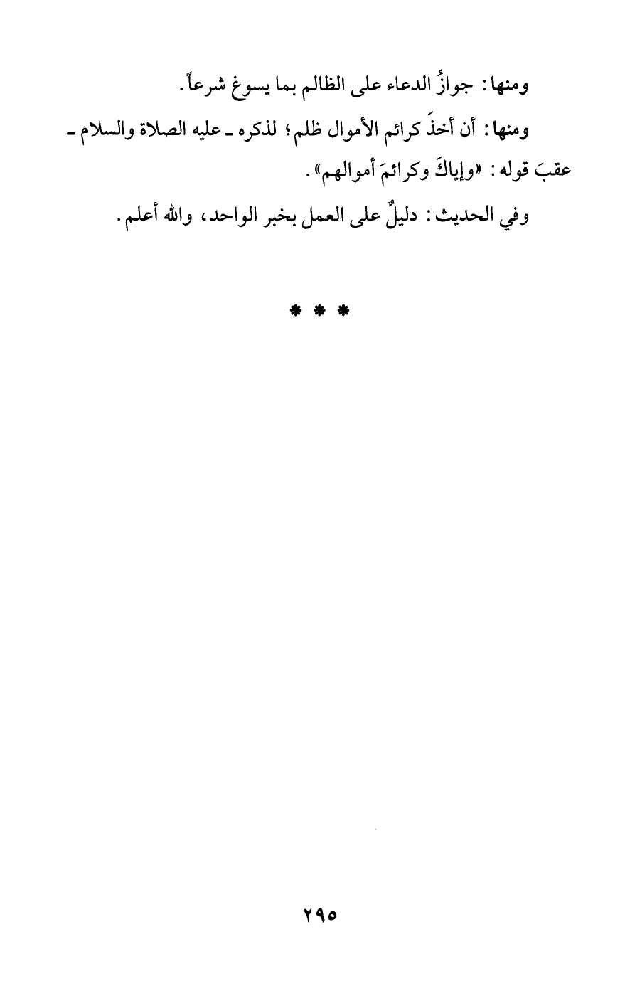 ومنها: أن أخذَ كرائم الأموال ظلم؛ لذكره -عليه الصلاة والسلام- عقبَ قوله: "وإياكَ وكرائمَ أموالهم".