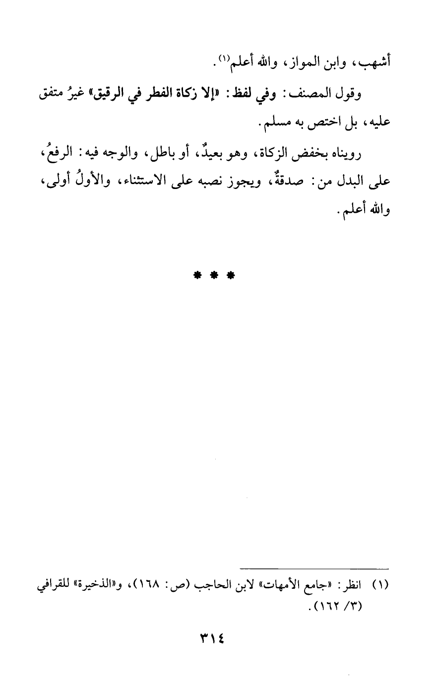 (¬1) انظر: "جامع الأمهات" لابن الحاجب (ص: 168)، و"الذخيرة" للقرافي (3/ 162).