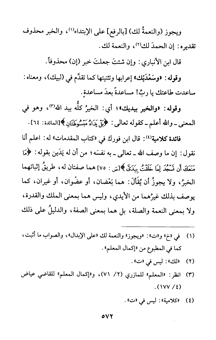 (¬1) في "خ" و"ت": "ويجوز" والنعمة لك "على الإبدال"، والصواب ما أثبت، كما في المطبوع من "إكمال المعلم".