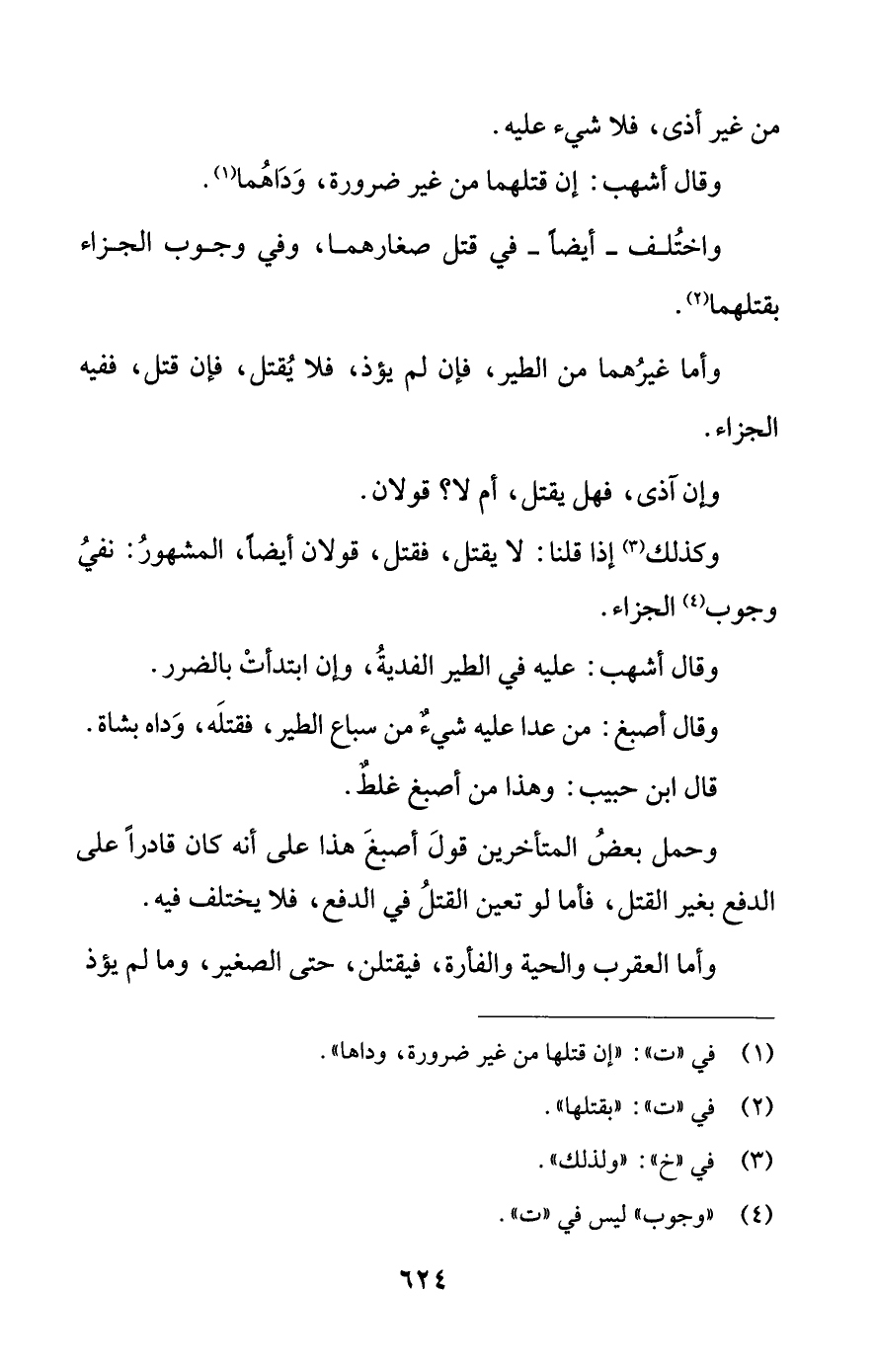 وأما غيرُهما من الطير، فإن لم يؤذ، فلا يُقتل، فإن قتل، ففيه الجزاء.