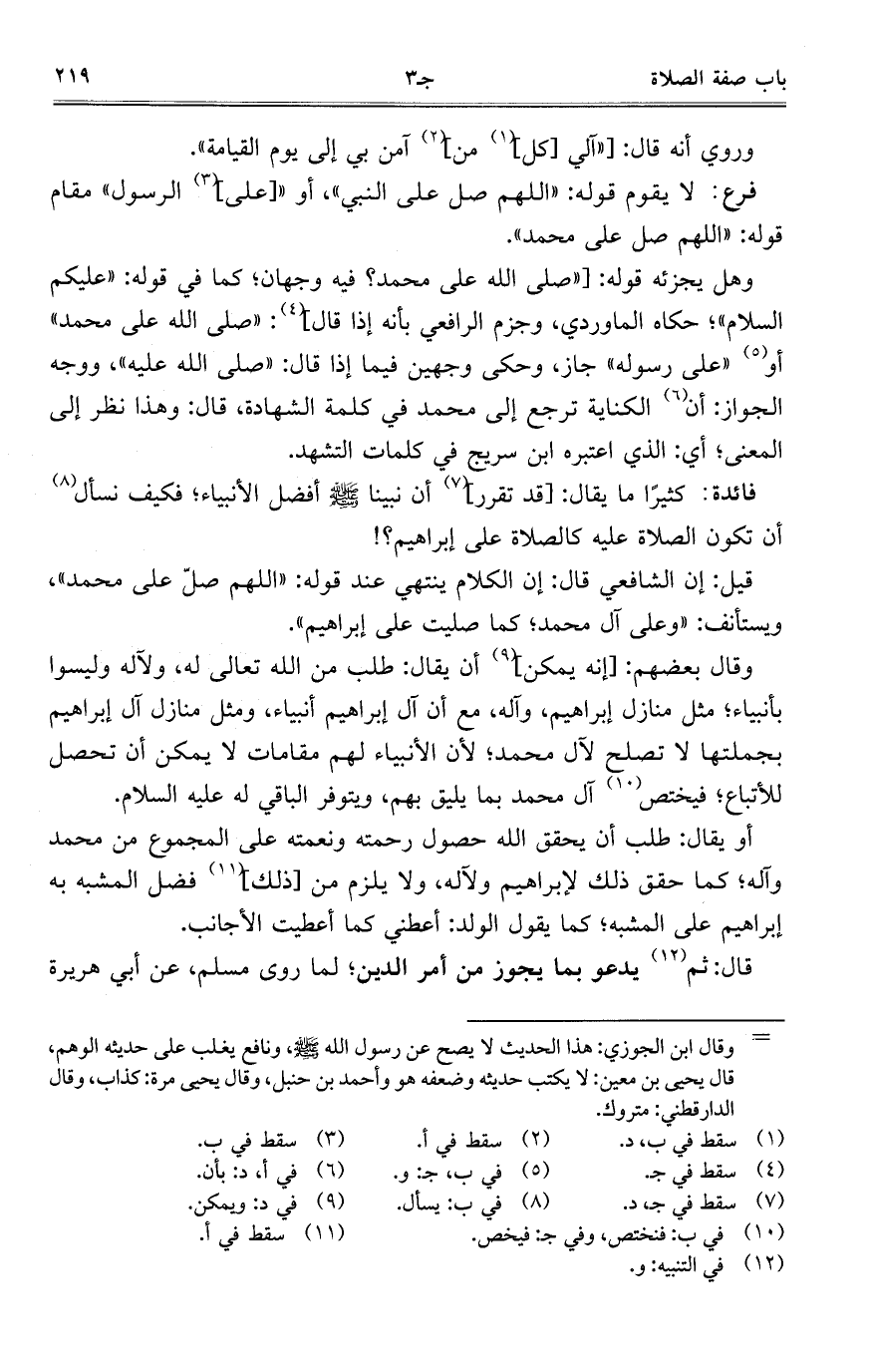 أو يقال: طلب أن يحقق الله حصول رحمته ونعمته على المجموع من محمد وآله؛ كما حقق ذلك لإبراهيم ولآله، ولا يلزم من [ذلك] فضل المشبه به إبراهيم على المشبه؛ كما يقول الولد: أعطني كما أعطيت الأجانب.
