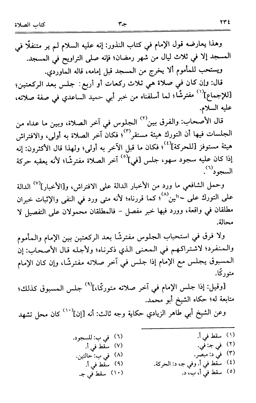 قال: وإن كان في صلاة هي ثلاث ركعات أو أربع: جلس بعد الركعتين؛ [للإجماع] مفترشاً؛ لما أسلفناه من خبر أبي حميد الساعدي في صفة صلاته، عليه السلام.