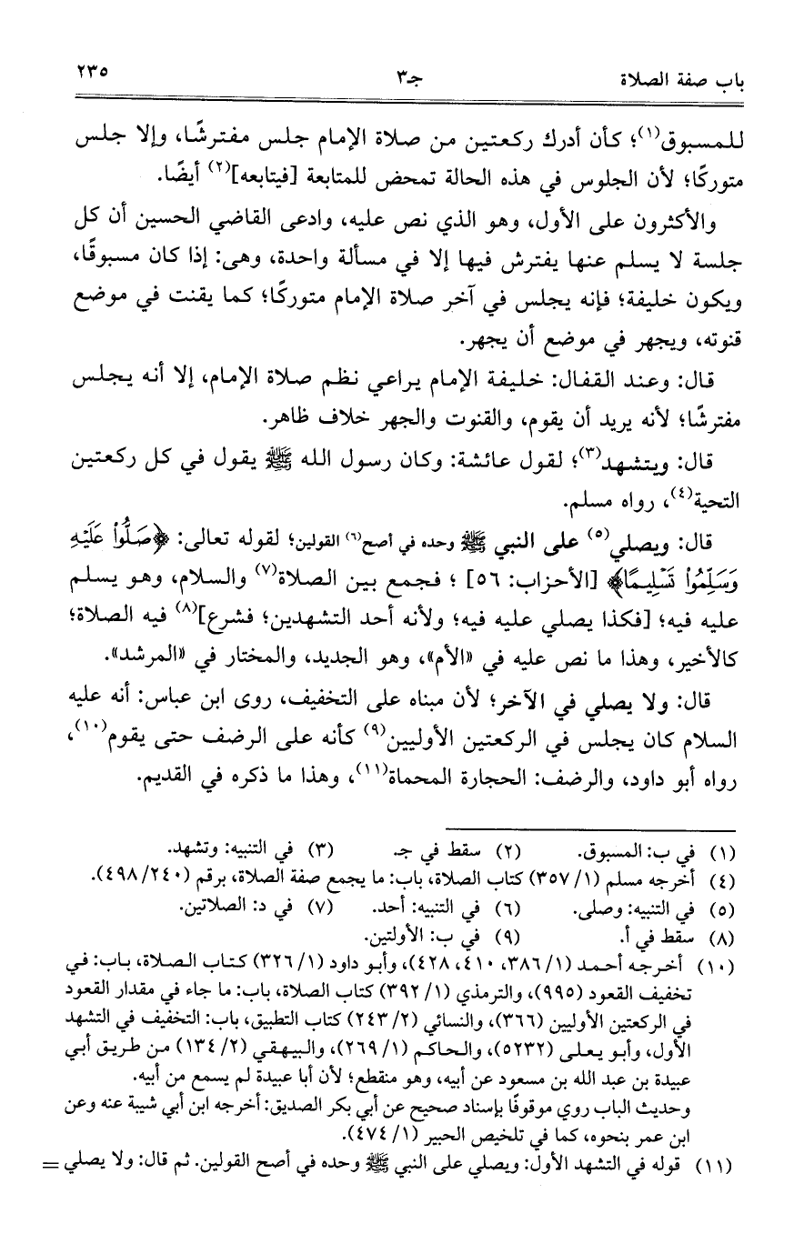 والأكثرون على الأول، وهو الذي نص عليه، وادعى القاضي الحسين أن كل جلسة لا يسلم عنها يفترش فيها إلا في مسألة واحدة، وهي: إذا كان مسبوقاً، ويكون خليفة؛ فإنه يجلس في آخر صلاة الإمام متوركاً؛ كما يقنت في موضع قنوته، ويجهر في موضع أن يجهر.